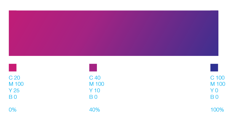 The gradient is generally used for headlines, titles, various visual elements (such as lines, bars, boxes or background) and illustrations. Use the gradient to highlight elements. If counterproductive, please consider using other solid colours.