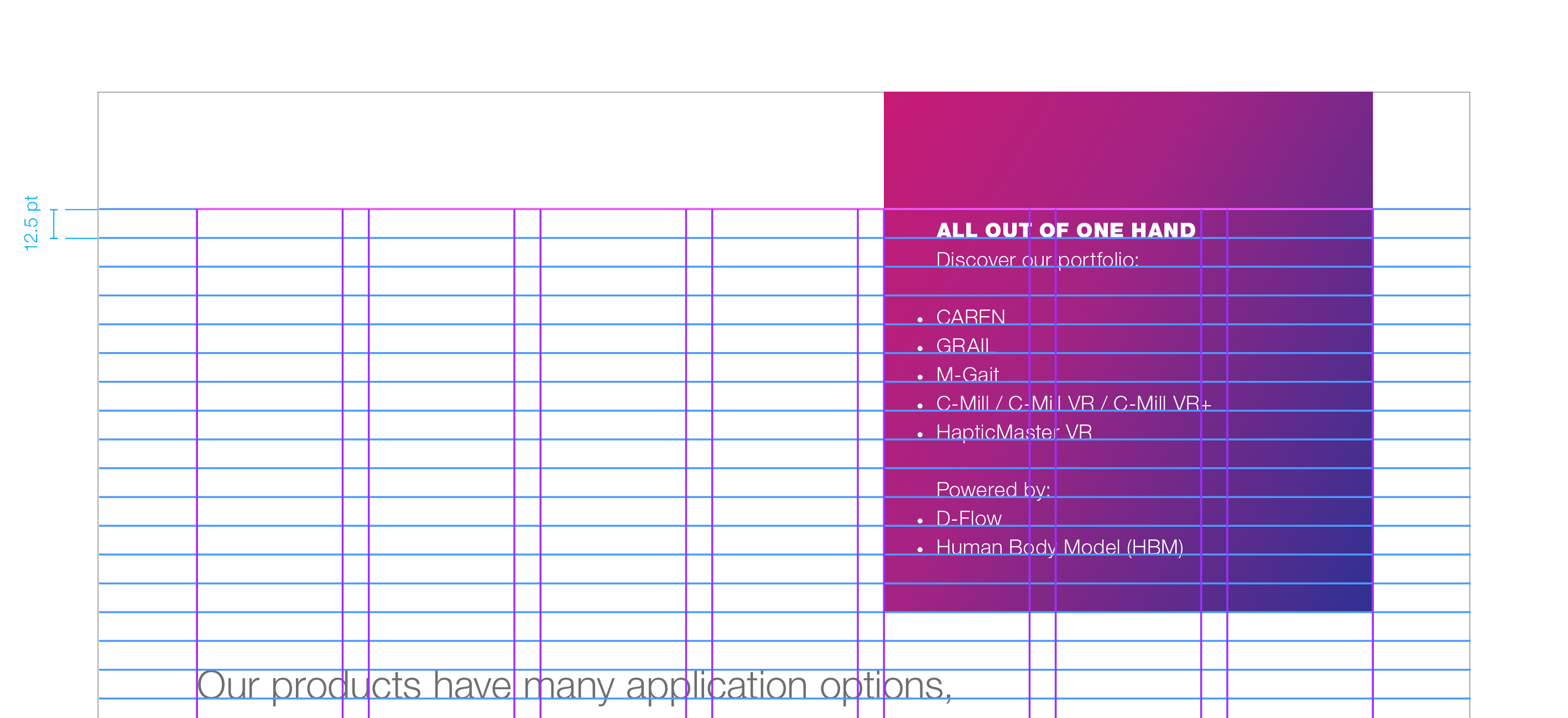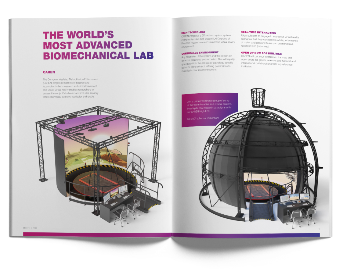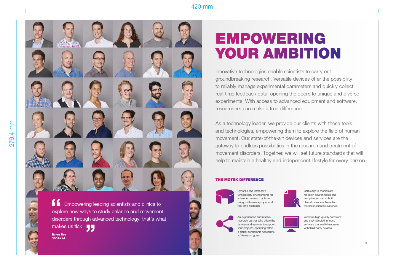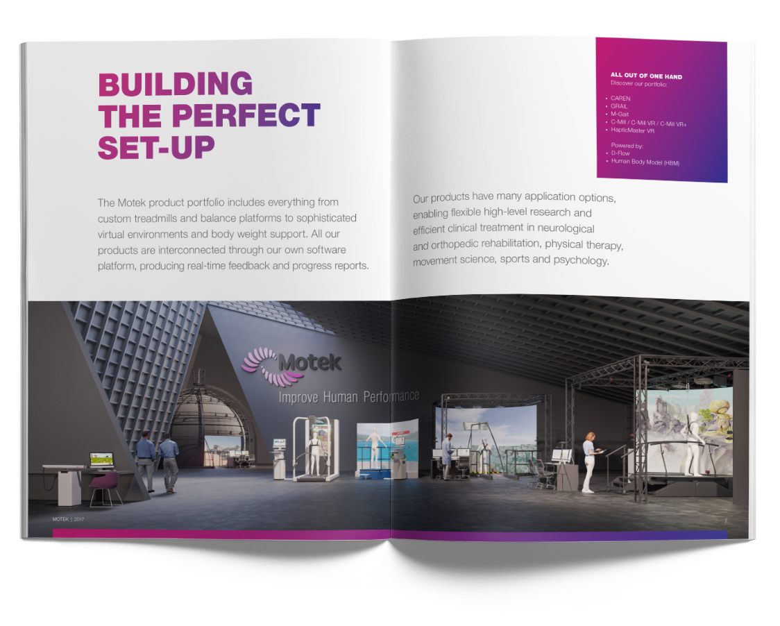 Motek has a versatile but easy-to-use grid. The identity – of brochures in particular – is characterized by a magazine-style layout, with large visuals, bold headlines, and an asymmetrical arrangement of text and images. For open design files please reach out to us under marketing@motekforcelink.com