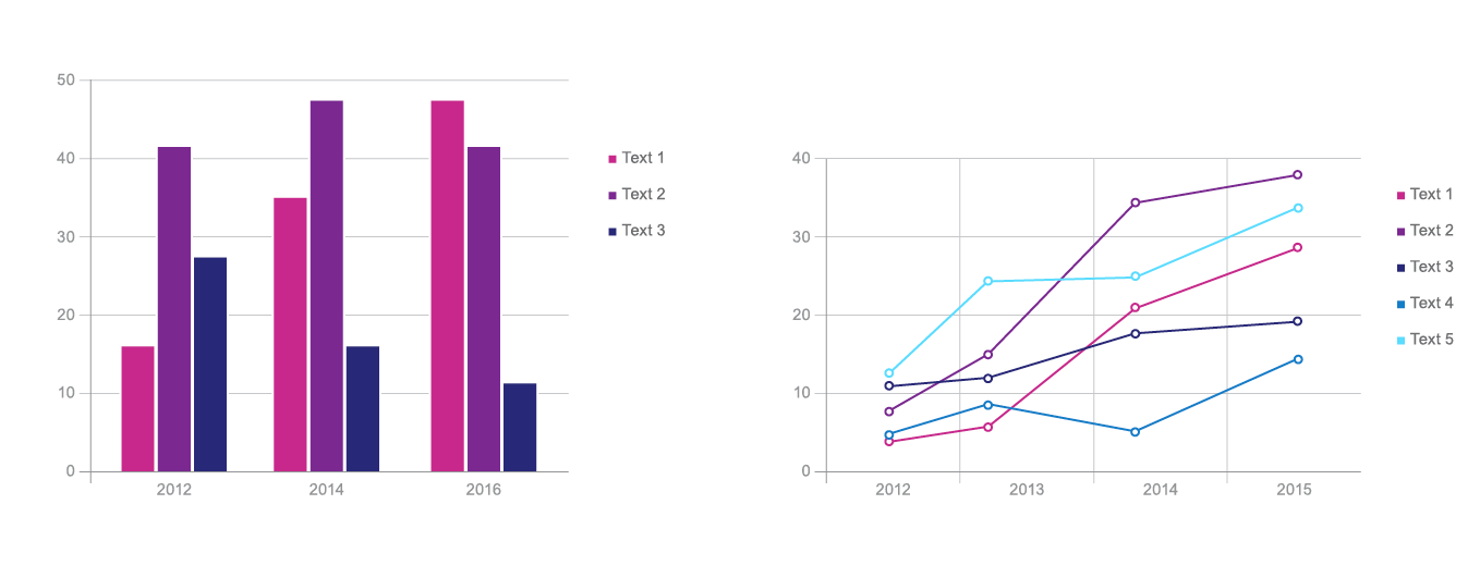 The Motek identity also includes diagrams and infographics that only use the secondary color palette in combination with Medium and Light Gray. Some examples of the style used for infographics in presentations:
