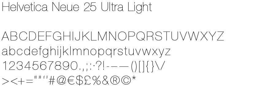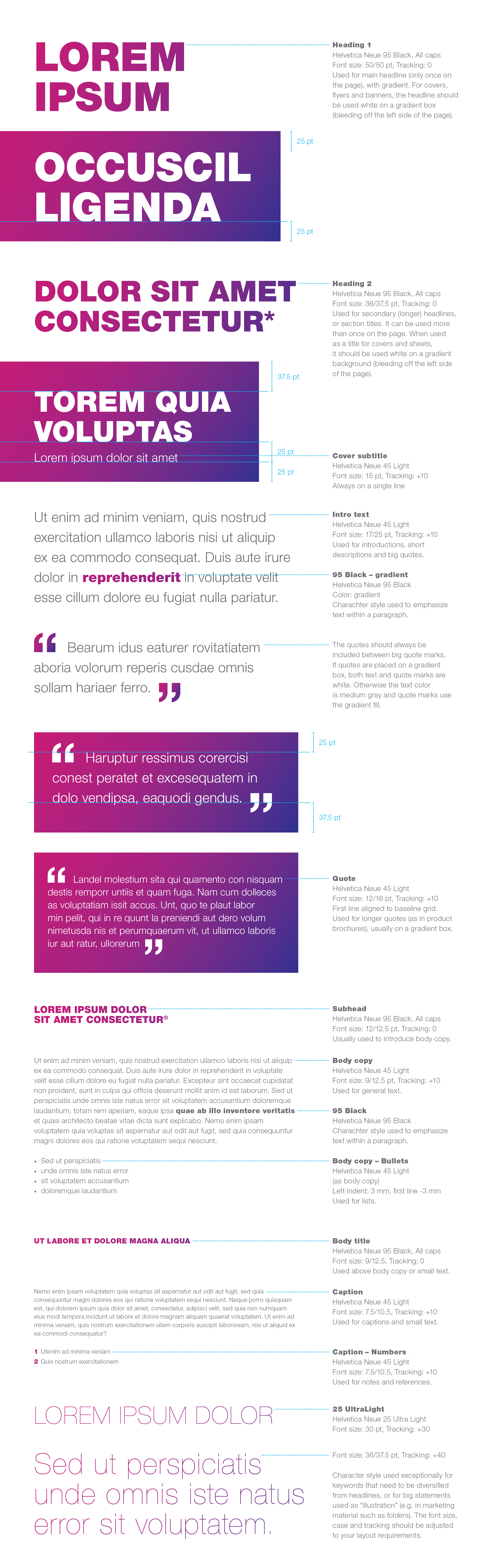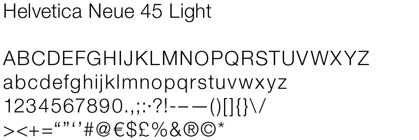 Helvetica Neue 45 Light is used, always with +10 tracking, for: