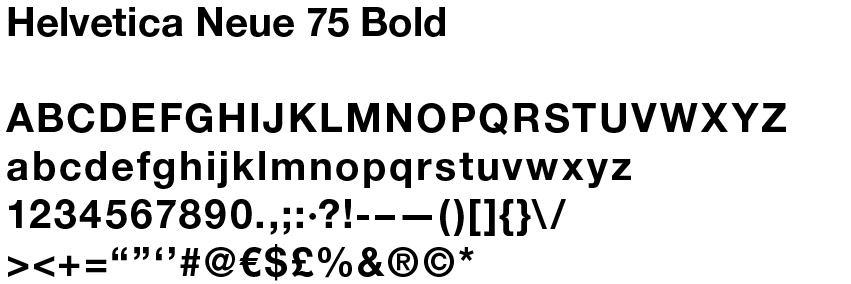 Helvetica 75 Bold is only used in very specific cases, when the black cut of the family proves too dark to be readable. Specifically for: